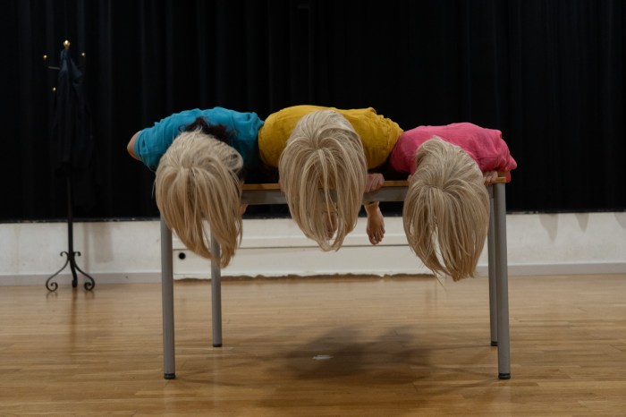 A piece of physical humor and unexpected twists. What begins as a well-coordinated duo is disrupted by the arrival of a third presence that breaks the established logic. The dynamics shift, are unsettled, and constantly reinvent themselves.